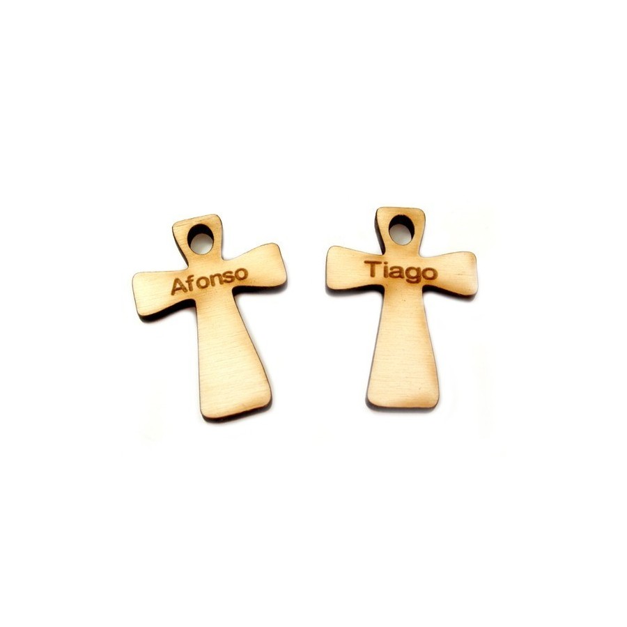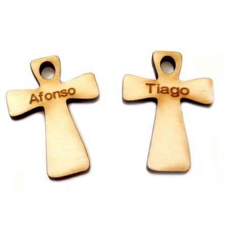 Cruz em choupo, cortada e gravada a laser com nome.