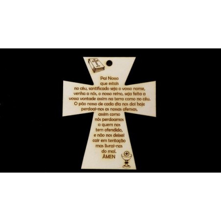 Cruz em choupo, cortada e gravada a laser com reza do Pai nosso.
