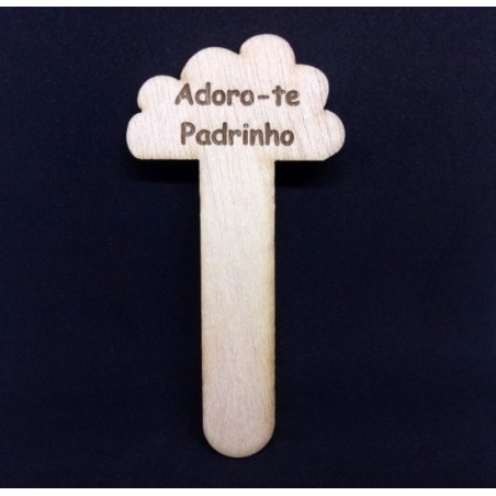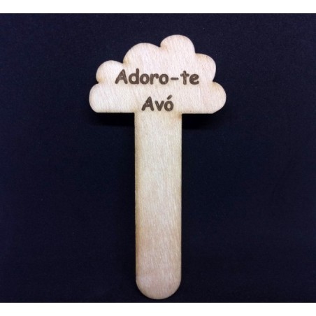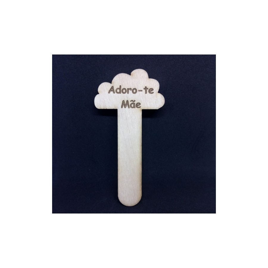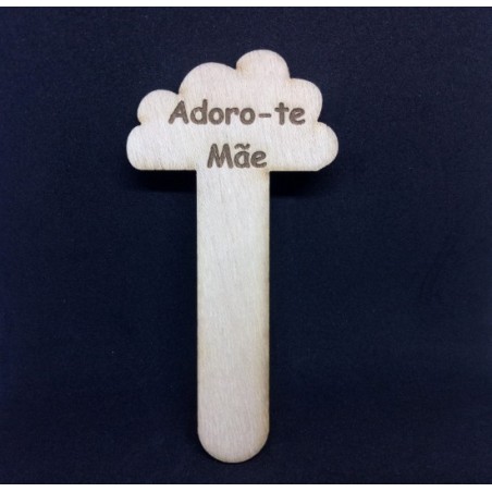 Marcador de Livro em choupo, com formato de nuvem na parte de cima e palavra gravada.