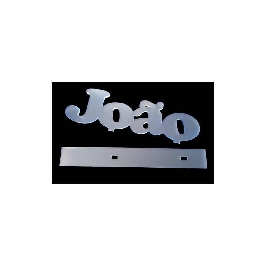 Nome em acrilíco, cortado a laser, com base de encaixe (Ideal para colar), letra mais larga.