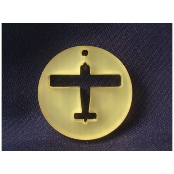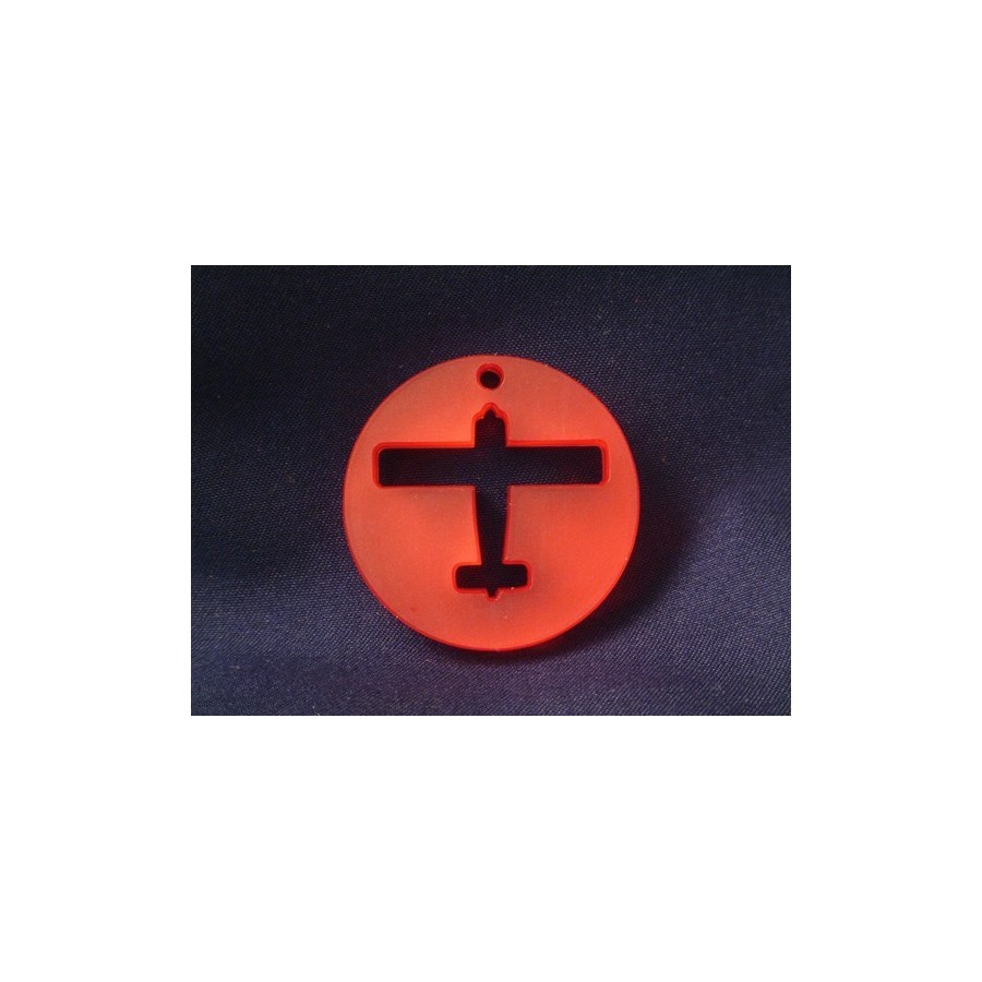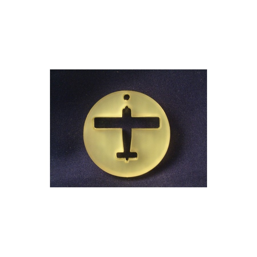 Pendente  em acrilico, redondo, com corte a laser no interior com formato de Avião, com 1 furo para colocação de fio ou argola.