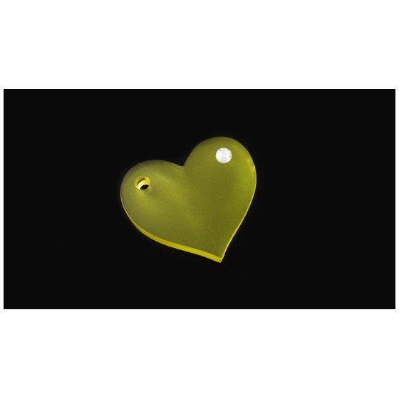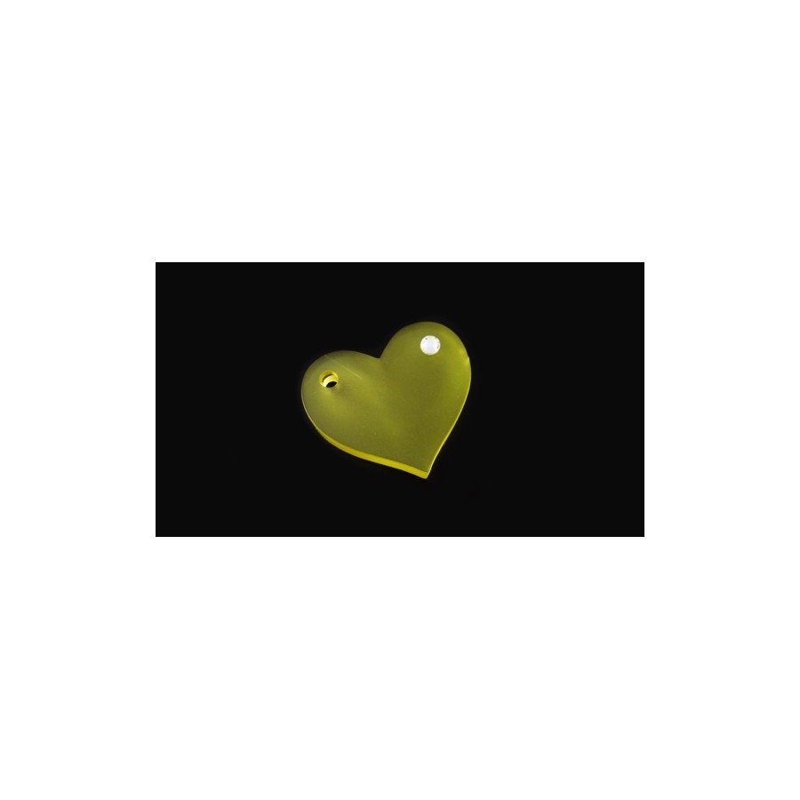 Pendente em acrilico, com corte a laser com formato de coração com aplicação de brilhante de cor cristal, com furo para colocação de fio ou argola.