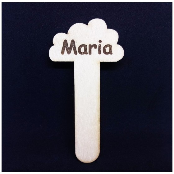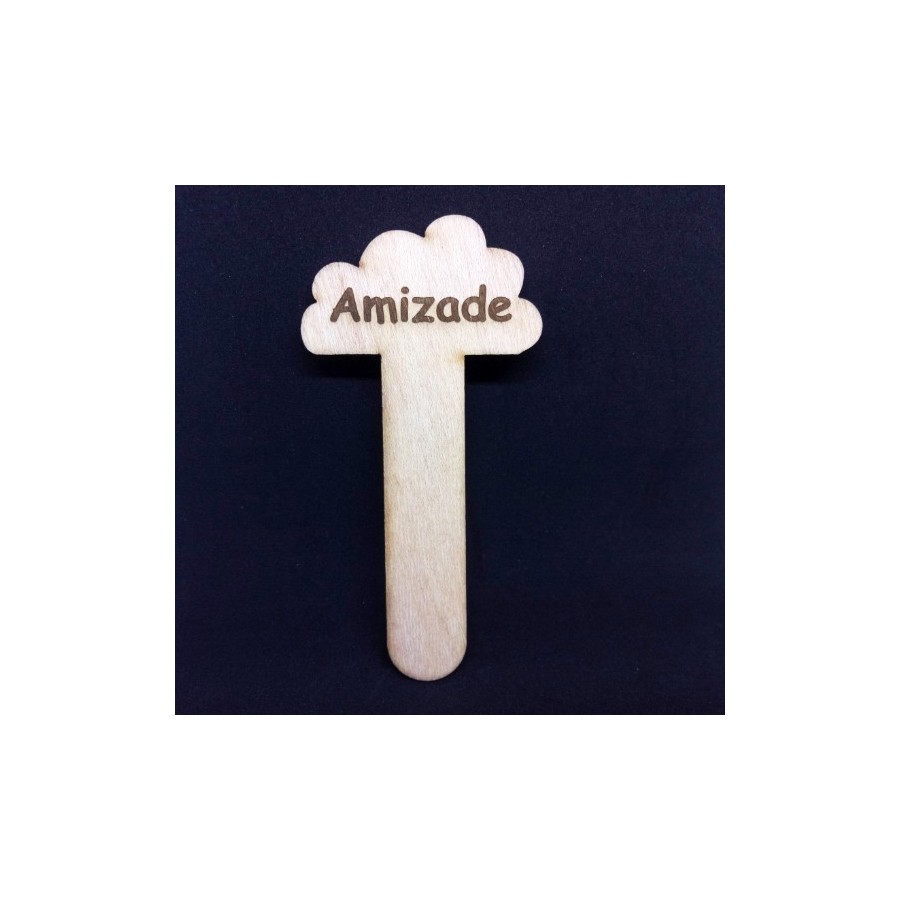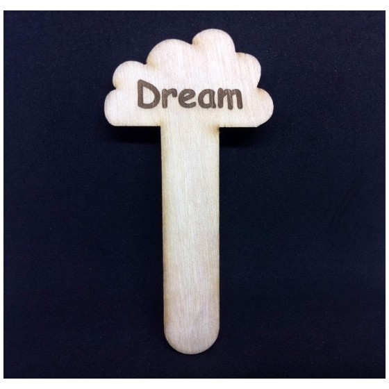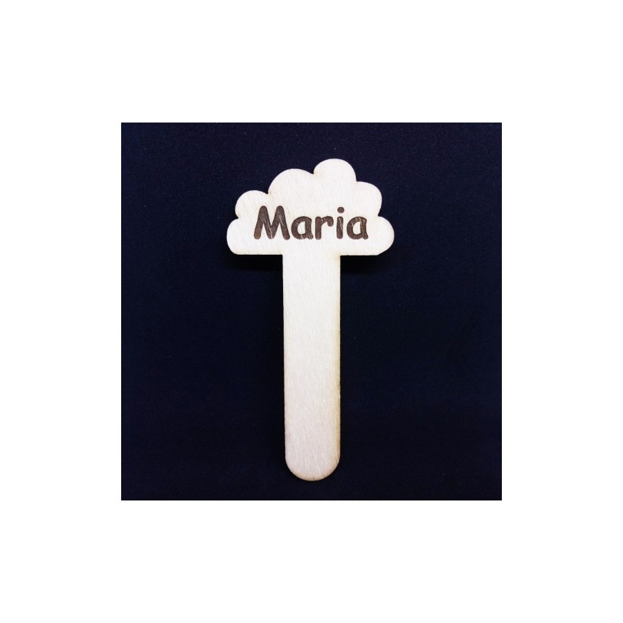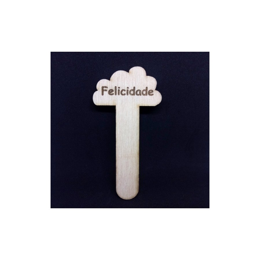 Marcador de Livro em choupo, com formato de nuvem na parte de cima e palavra gravada.