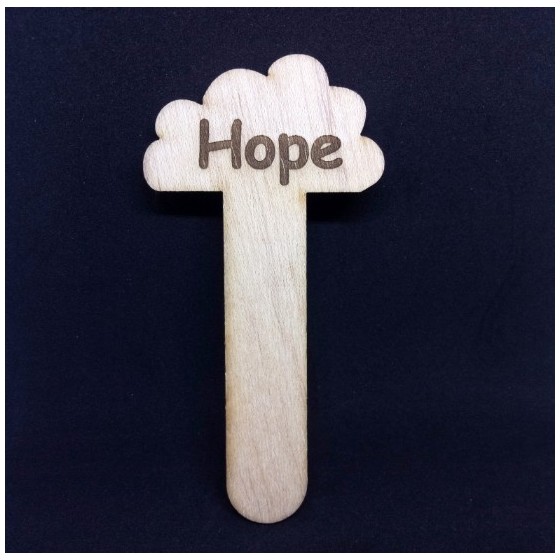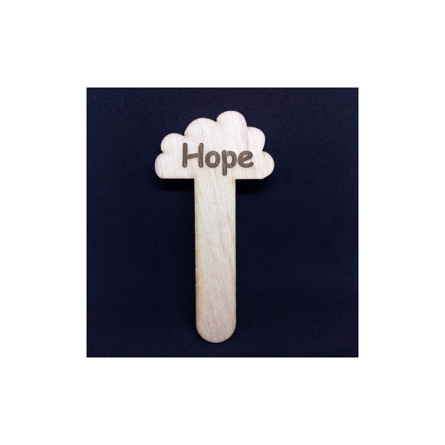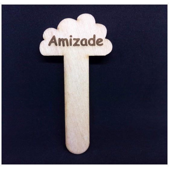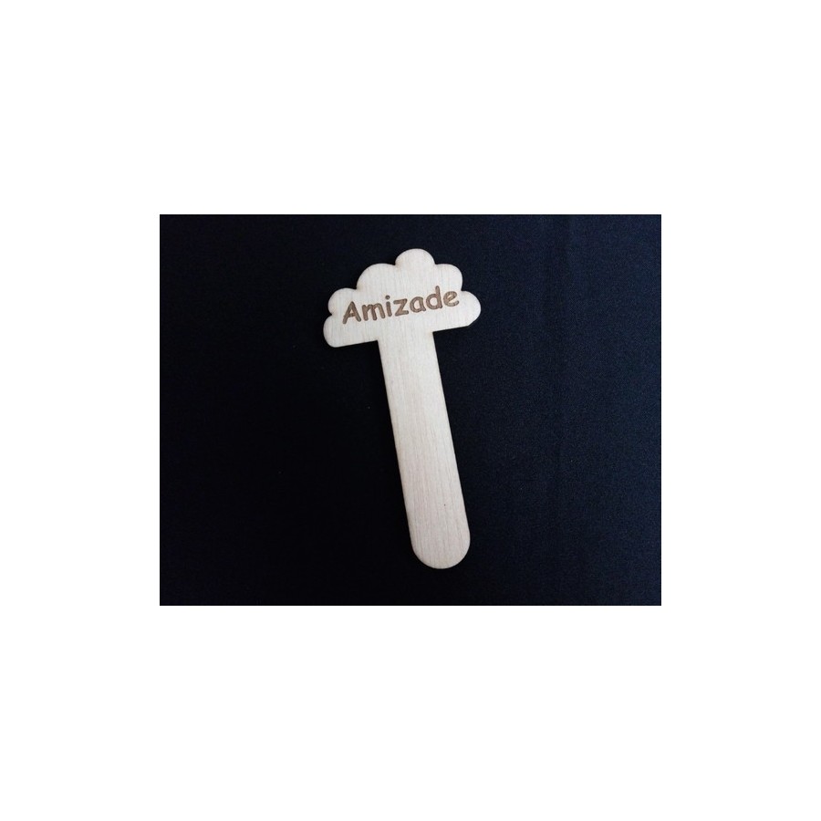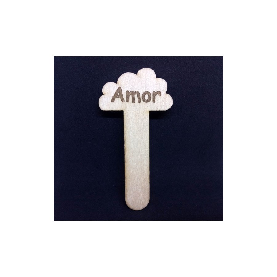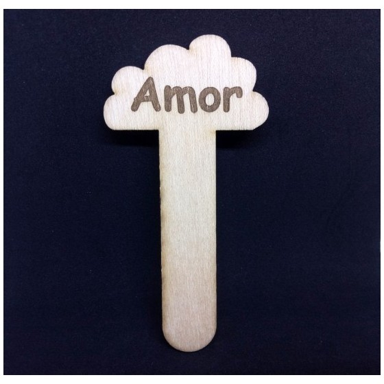Marcador de Livro em choupo, com formato de nuvem na parte de cima e palavra gravada.