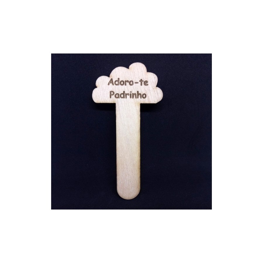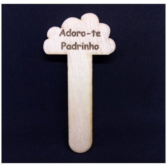 Marcador de Livro em choupo, com formato de nuvem na parte de cima e palavra gravada.