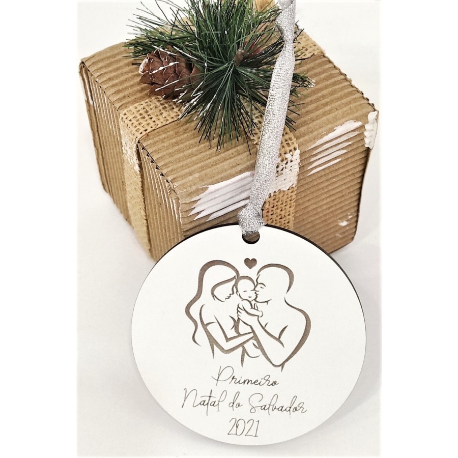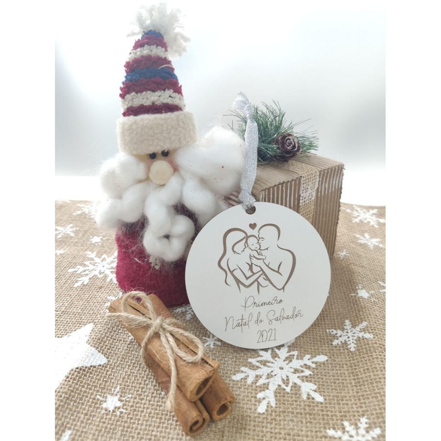 Não esquecer de gravar a sua personalização para poder adicionar ao carrinhoBola de Natal em mdf laminado a branco ou choupo de cor madeira natural, com gravação e recorte a laser.