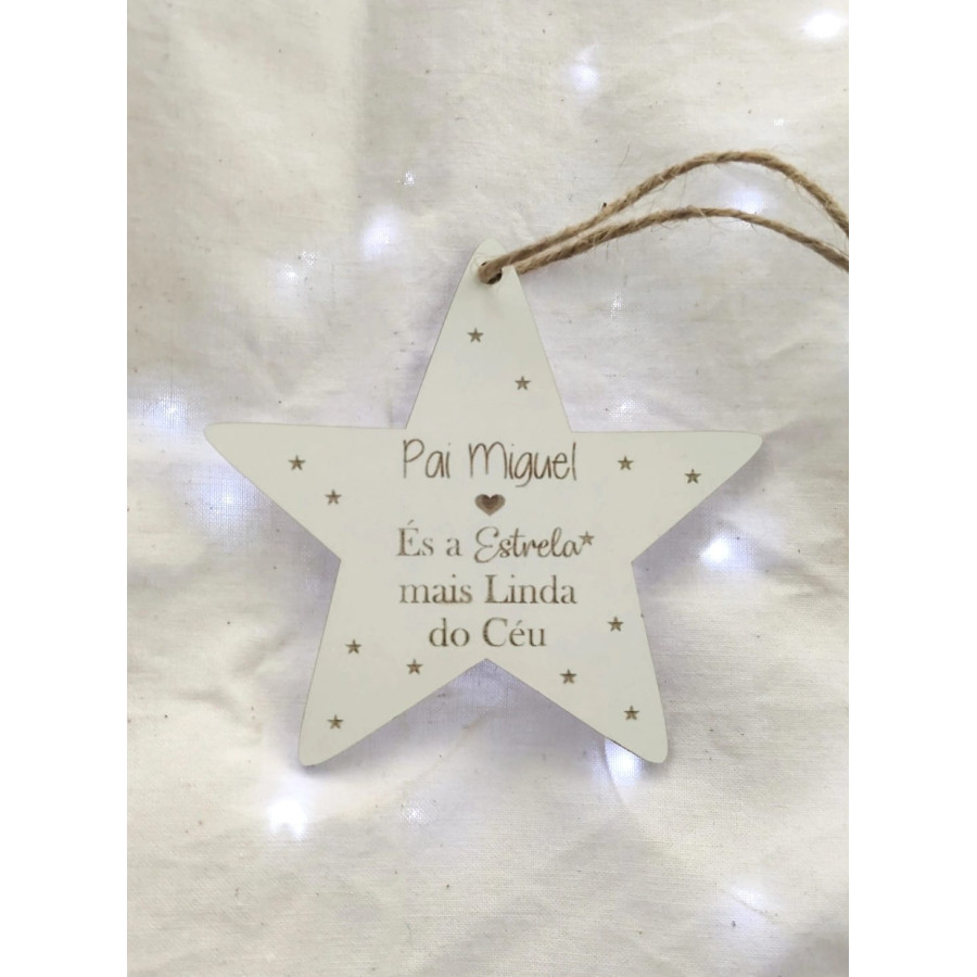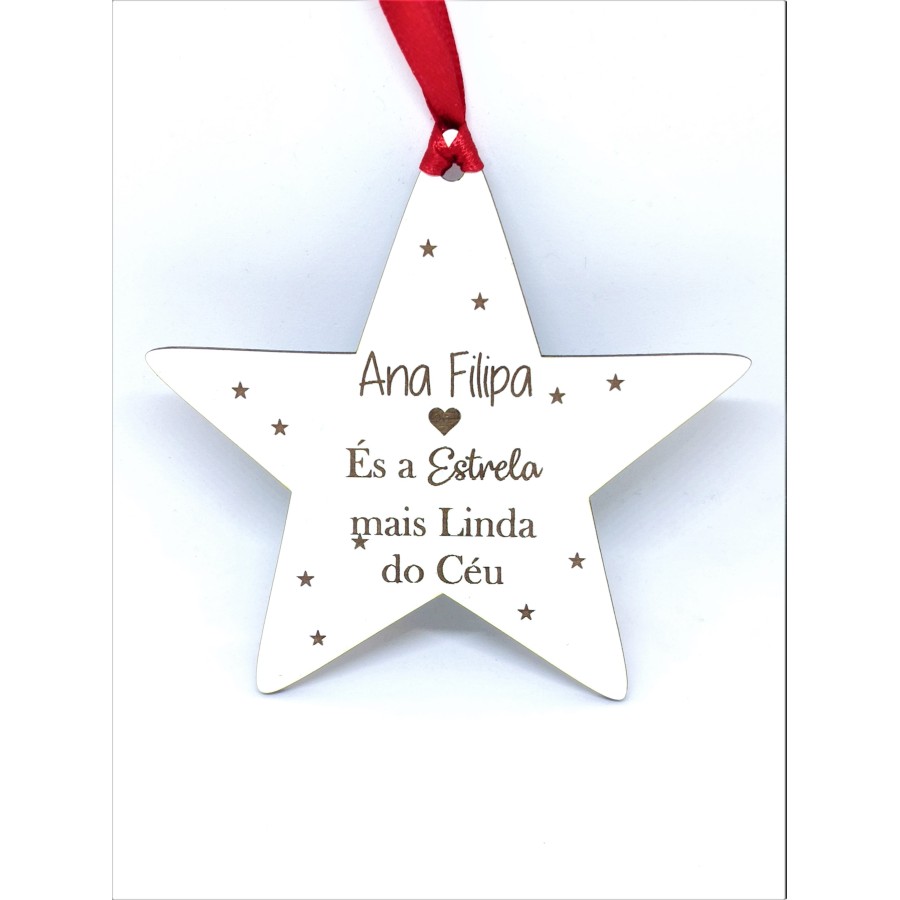 Pendente de Natal em mdf laminado a branco ou choupo de cor madeira natural, com gravação e recorte a laser.