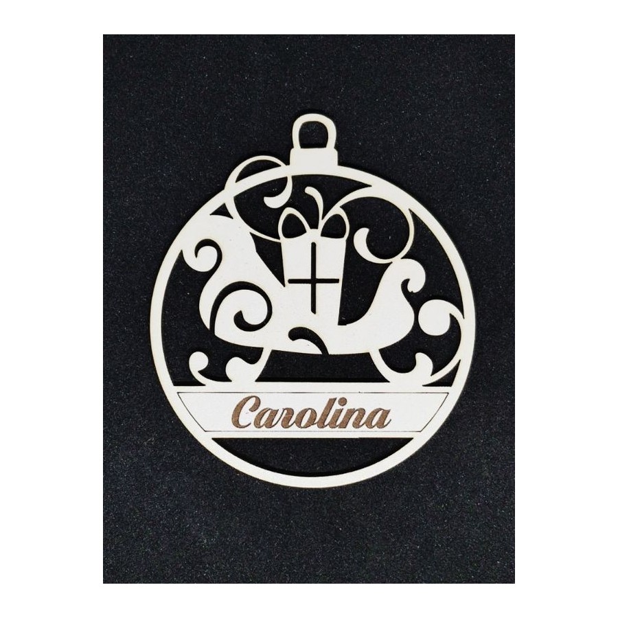 Não esquecer de gravar a sua personalização para poder adicionar ao carrinhoBola de Natal em mdf laminado a branco ou em choupo cor madeira natural, com gravação e recorte a laser.