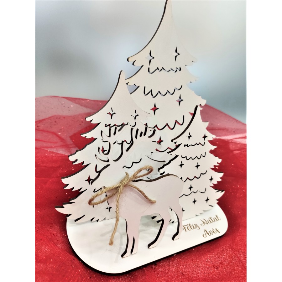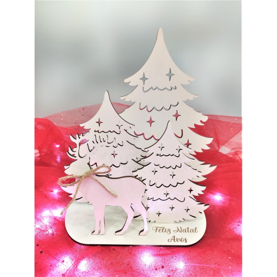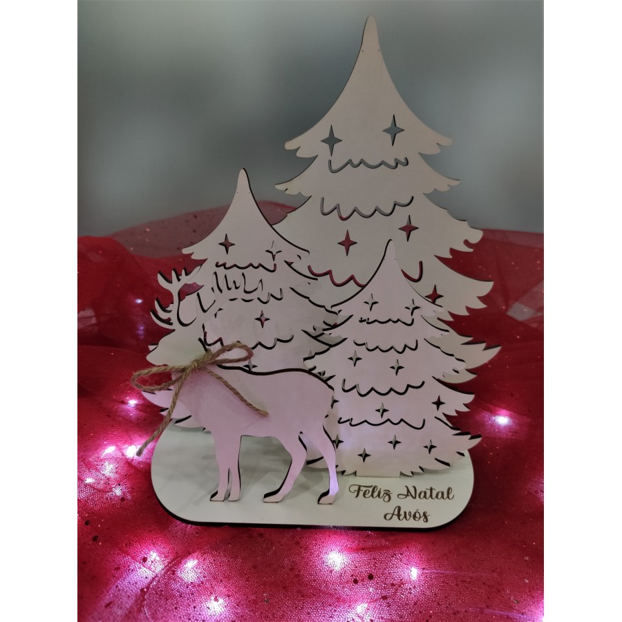 Não esquecer de gravar a sua personalização para poder adicionar ao carrinhoCenário Natalício em MDF laminado a branco ou choupo cor da madeira natural, com gravação e recorte a laser. Está incluída 1 vela Led.