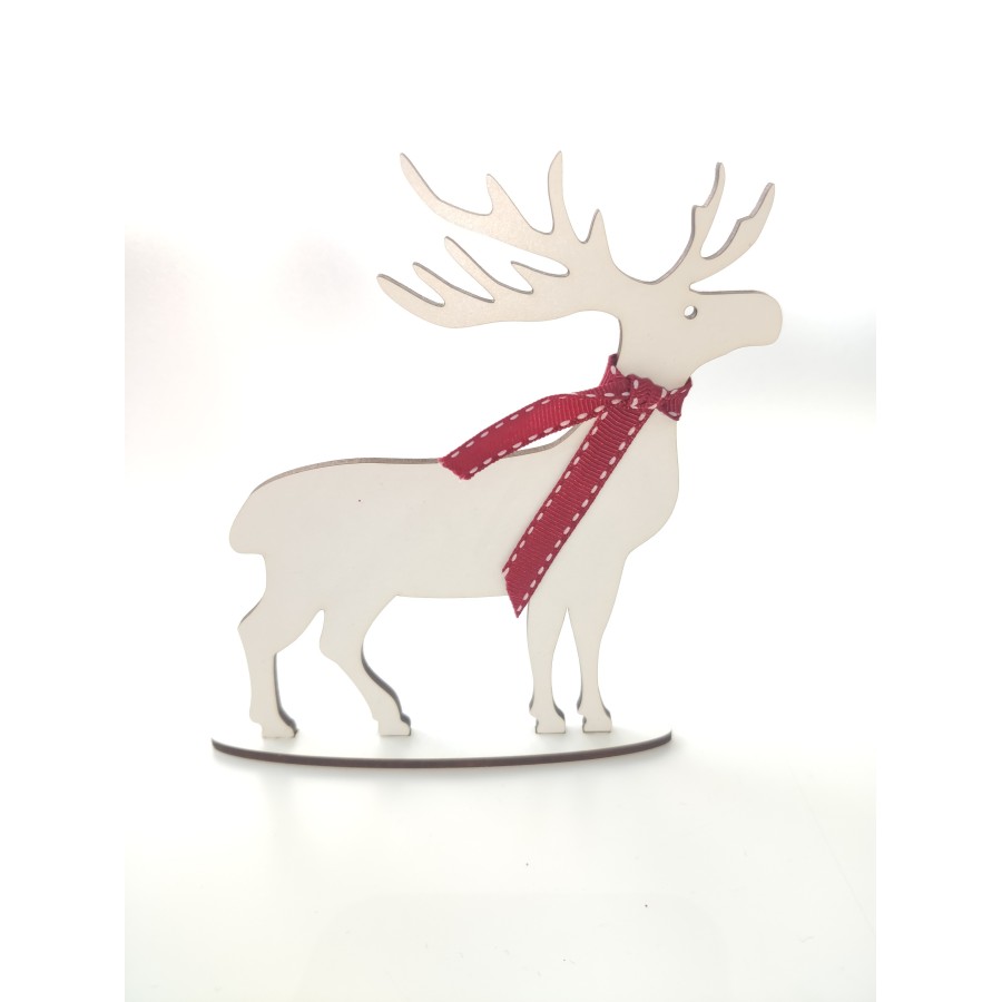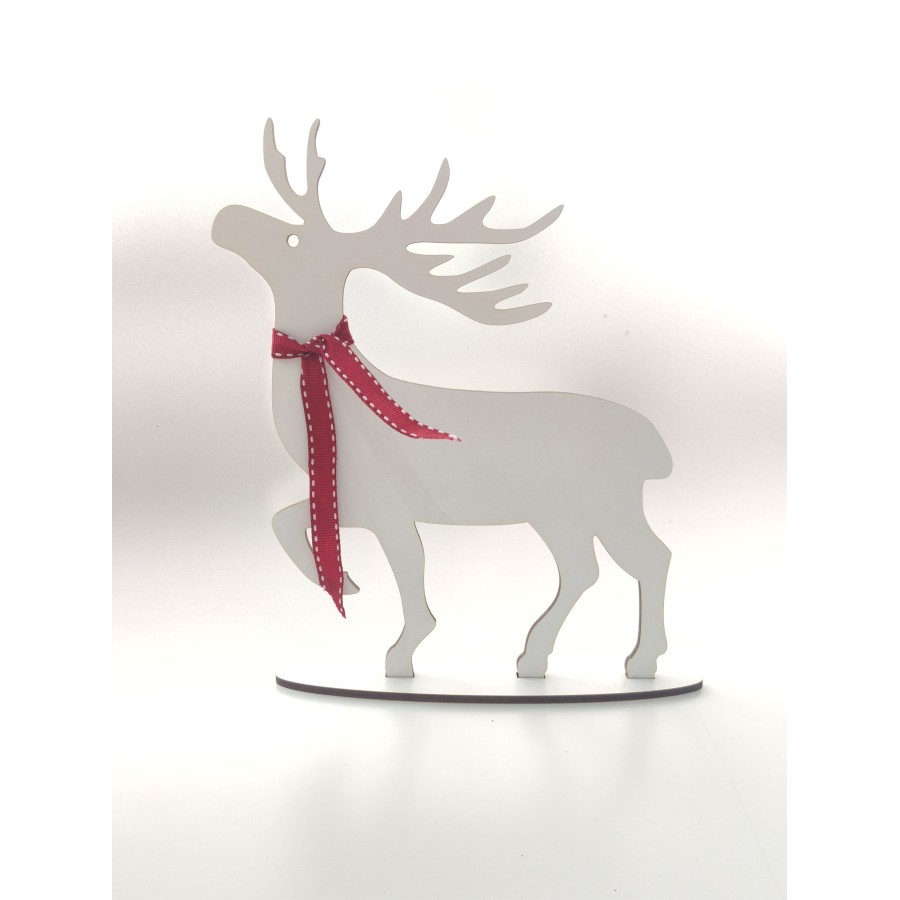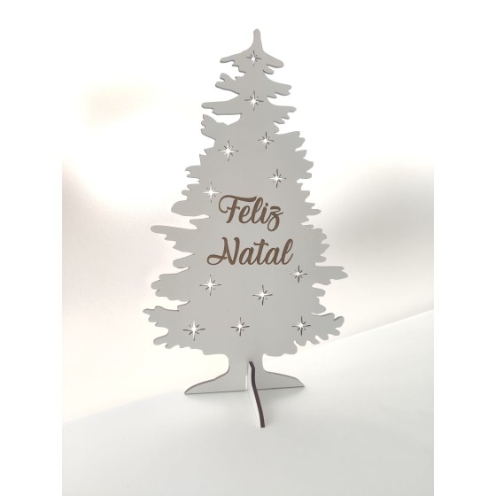 Não esquecer de gravar a sua personalização para poder adicionar ao carrinhoCenário decorativo composto por casal de renas, filhote e pinheiro com frase, em MDF laminado a branco ou choupo na cor de madeira natural.