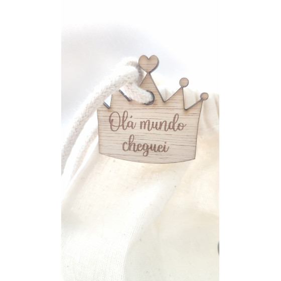 Este conjunto de 7 placas evolutivas de madeira gravadas a laser dos dois lados, inclui cada mês do primeiro ano do bebê, e mais uma placa personalizada, de um lado com o nome do bebé, e do outro lado com uma frase à escolha (Ex: "Sou a Princesa dos meus papás"; "Sou o amor dos meus papás"; "Olá Mundo Cheguei"; "Cheguei para acrescentar/espalhar amor"; "Família Cheguei"; "Feita com muito amor"...).