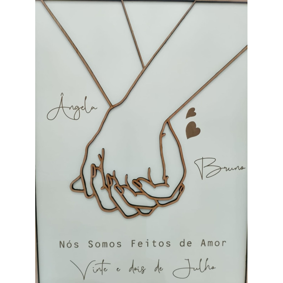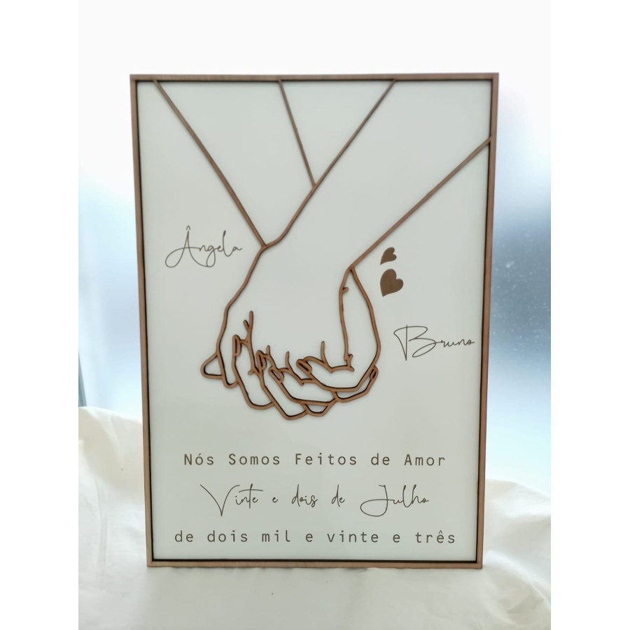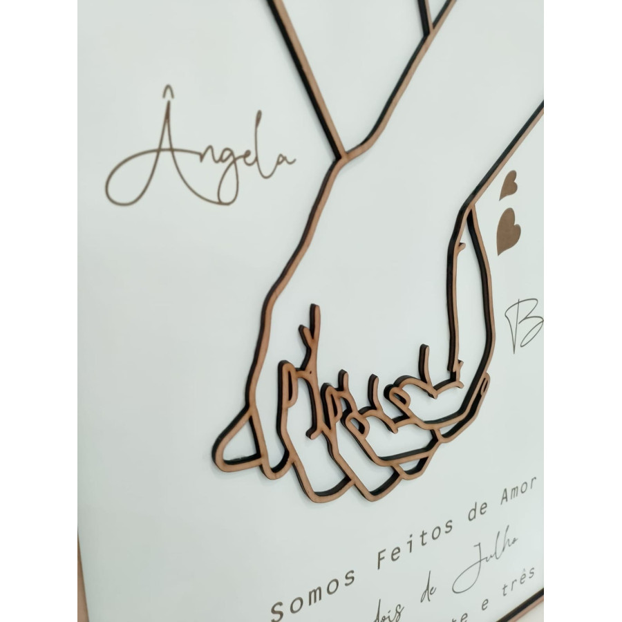 Quadro em madeira com Mãos em relevo, pode optar entre dois tamanhos e pode personalizar a frase.