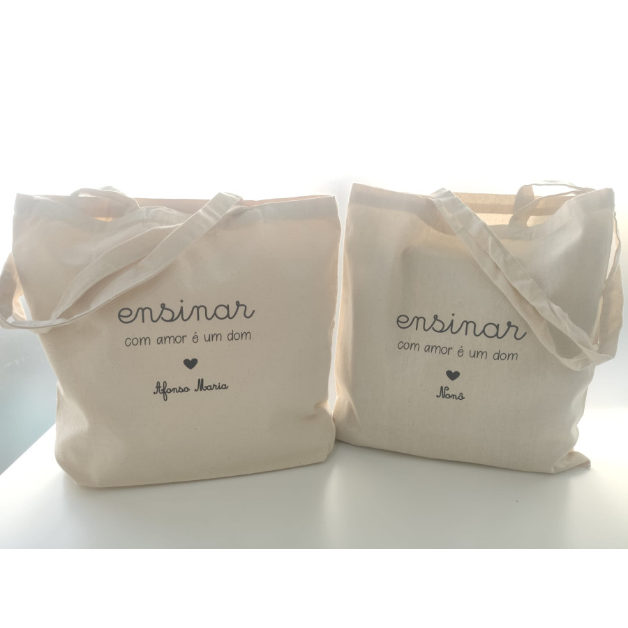 Agradece de forma especial a quem cuida, ensina e inspira com este saco de algodão personalizado, criado com carinho para professoras, educadoras ou auxiliares.
