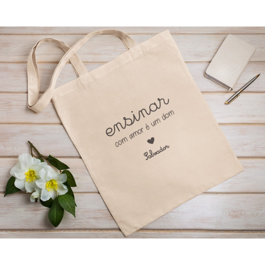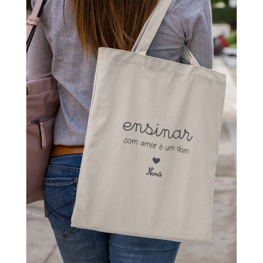 👜 Tote Bag "Ensinar com Amor é um Dom" – Um Miminho para Professora, Educadora ou Auxiliar