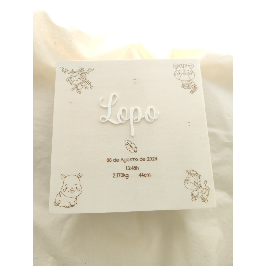 Caixa de Recordações de Bebé modelo animais da selva.