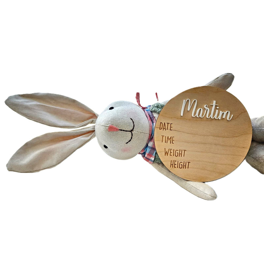 Celebre a chegada do seu bebé com um detalhe único e cheio de significado. O nosso milestone de nascimento em madeira de bétula, cuidadosamente gravado a laser, foi pensado para eternizar um dos momentos mais especiais da vida.