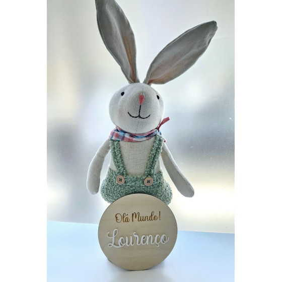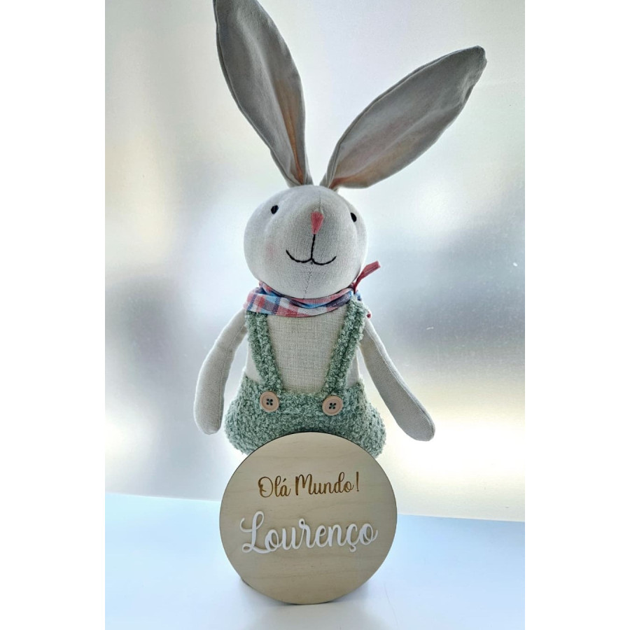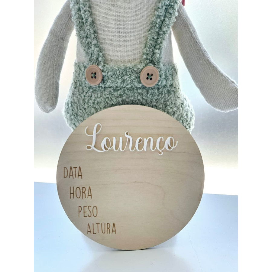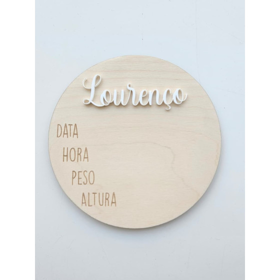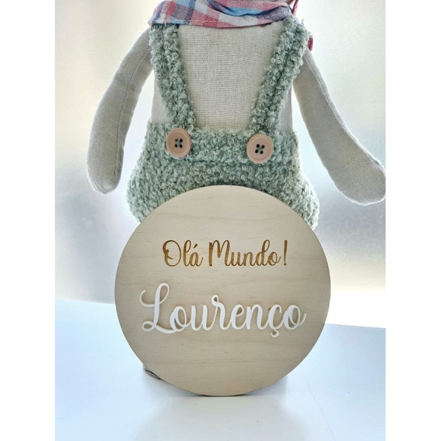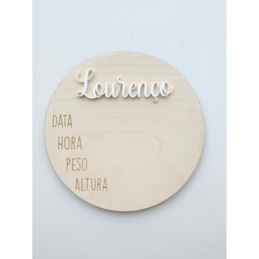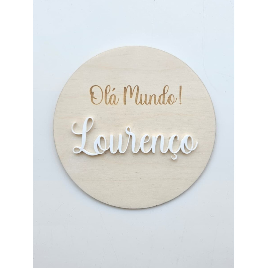 Não esquecer de gravar a sua personalização para poder adicionar ao carrinhoEsta placa personalizada apresenta um design elegante e intemporal, com o nome do bebé em destaque, aplicado em acrílico branco em relevo, criando um efeito delicado e sofisticado.