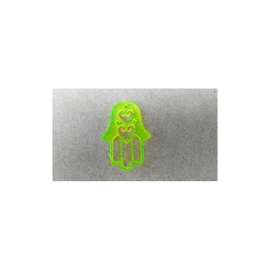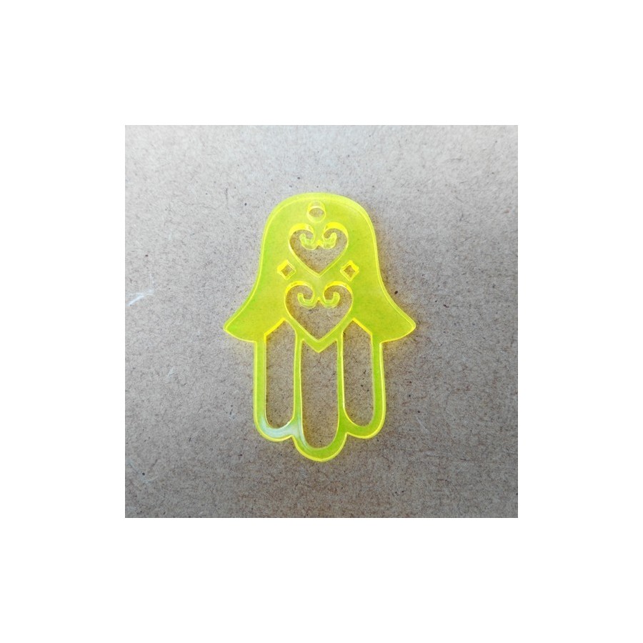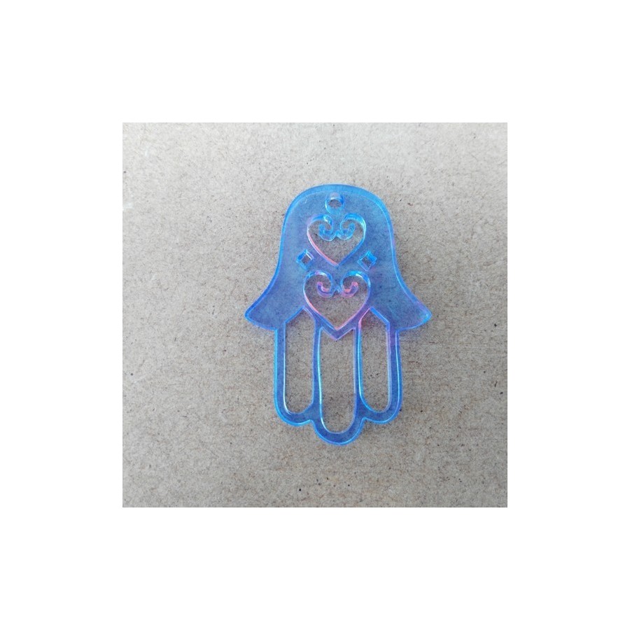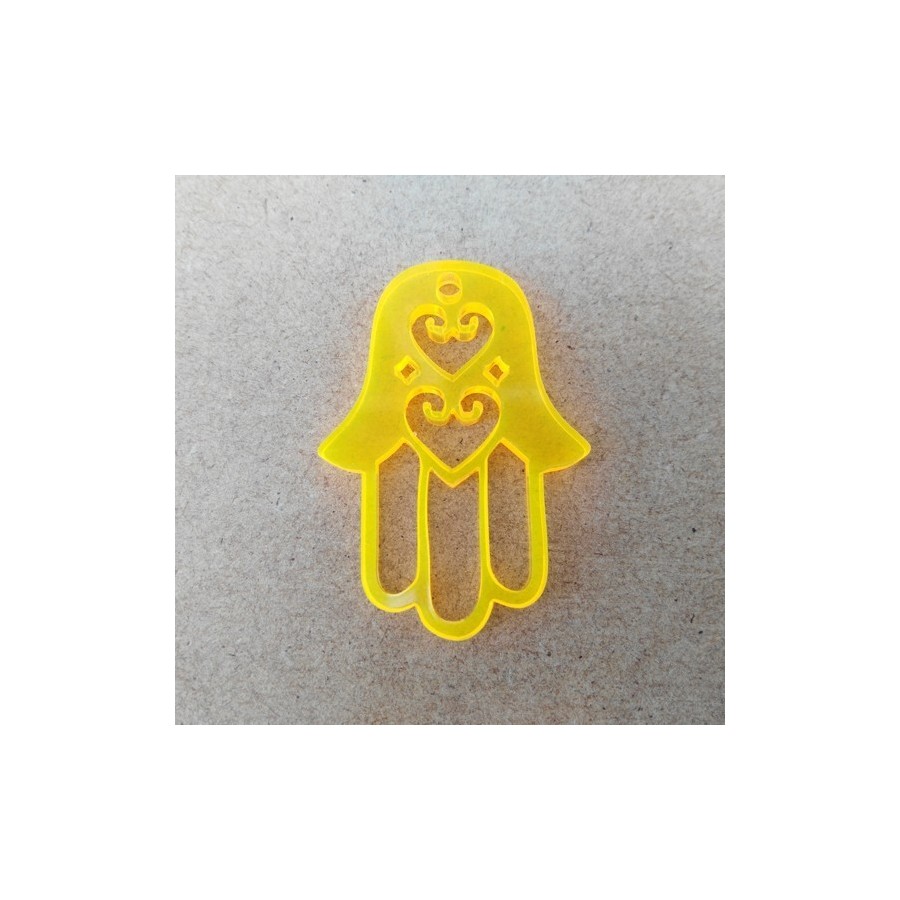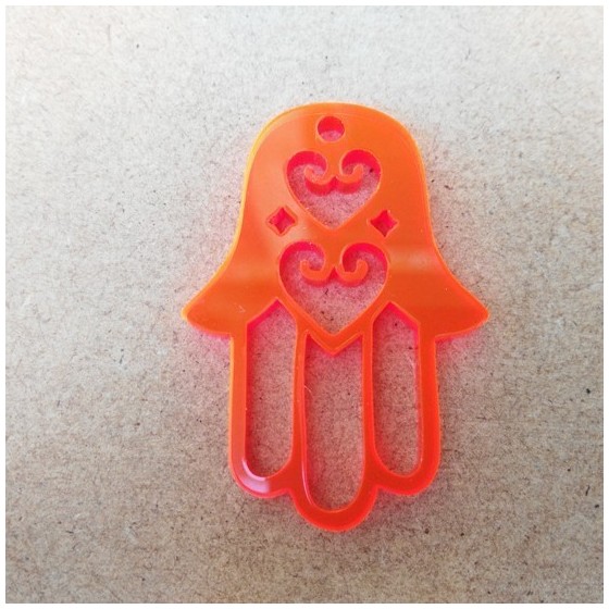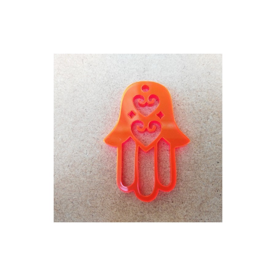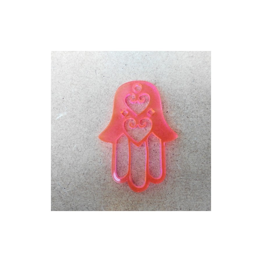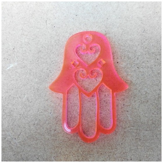 Pendente  em acrilico, formato mão de fátima, com corações recortados, com furo para colocação de fio ou argola.