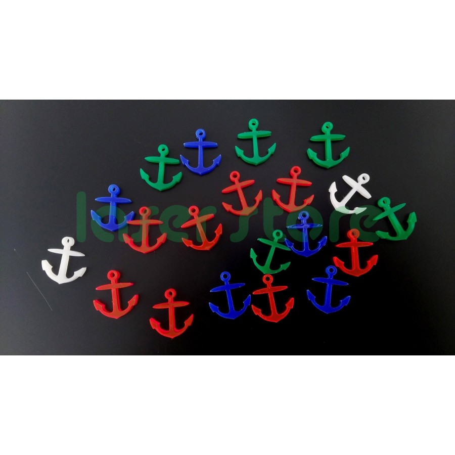 Pendente  em acrilico, com formato de âncora, com 1 furo para colocação de fio ou argola.