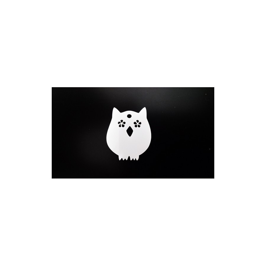 Pendente  em acrilico, com formato de Coruja, com 1 furo para colocação de fio ou argola.