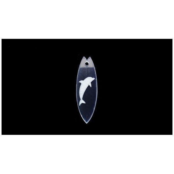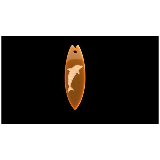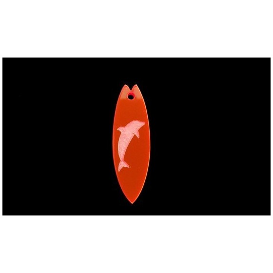 Pendente  em acrilico, com formato de prancha, com gravação a laser, com 1 furo para colocação de fio ou argola.