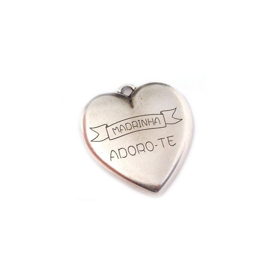 Pendente Zamak Coração XL "Madrinha Adoro-te" 55x53mm