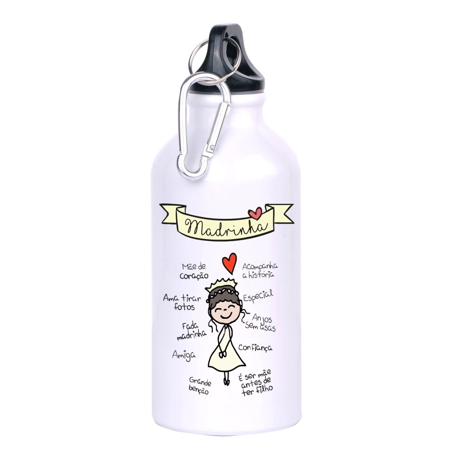 Garrafa em alumínio, personalizada, com frase ou nome, com mosquetão.